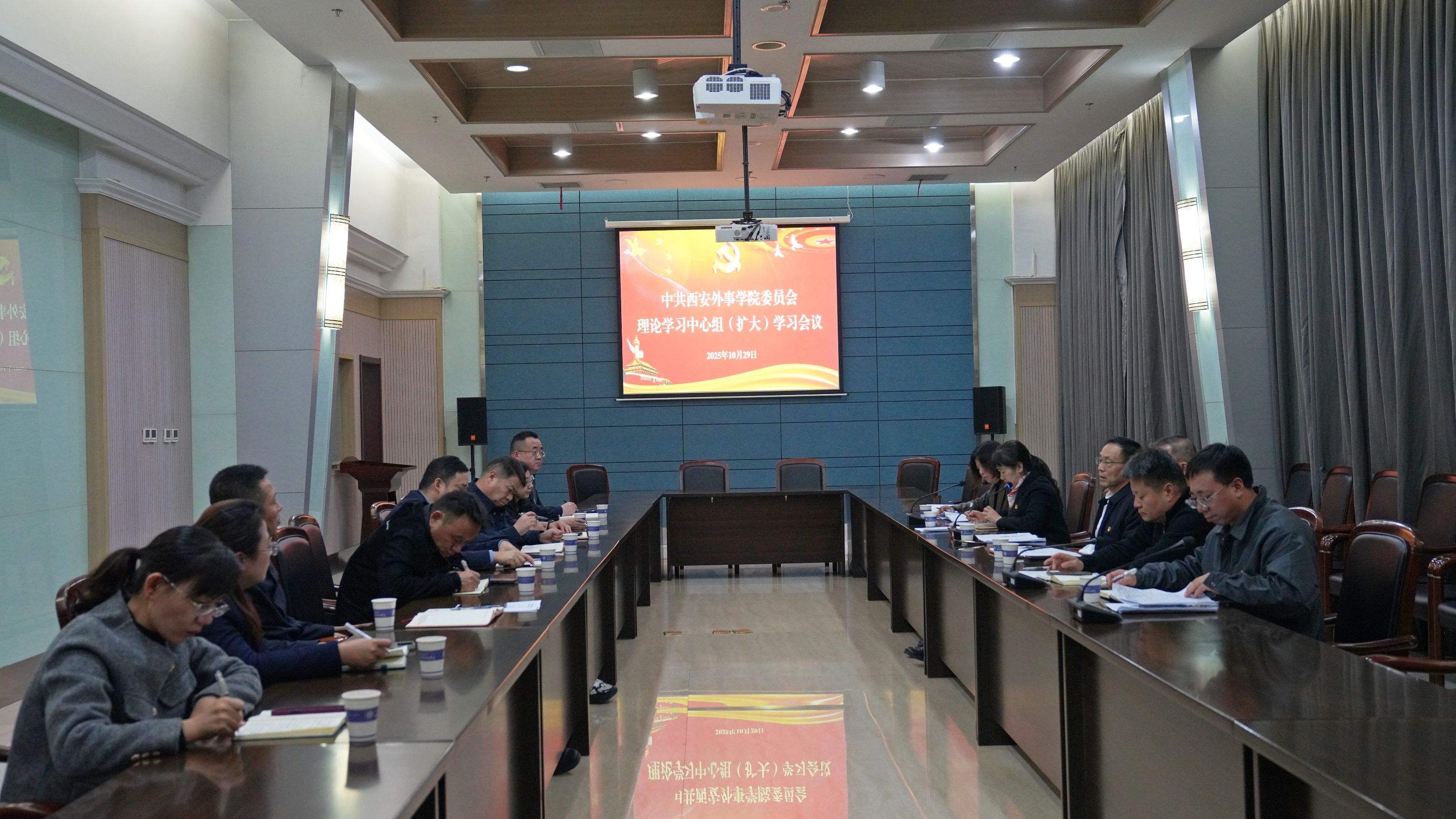 10月29日下午,西安外事学院党委理论学习中心组在西楼五层会议室召开扩大学习会。学校党委书记雷西合主持会议并讲话。